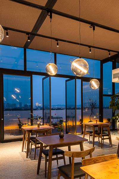 顶楼赏日落,咖啡厅远眺小蛮腰